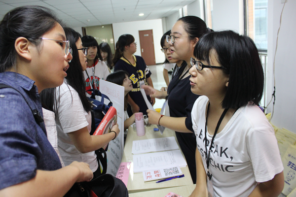 7:30,以16级本科生为主力军的学院迎新志愿者在25号楼学院迎新点集结完毕,整装待发迎接小17们的到来。随着小17如约而至,网络的亲密交流也转化为见面的热情问候,在志愿者的热情引导下,新生在最短的时间内完成注册报到、领取校园卡和资料袋、寝室入住等环节。从校区的校园导引、校情校史介绍到生活区的楼层指引、生活攻略普及,高年级员工以高度的责任感和担当精神发挥了传帮带作用。