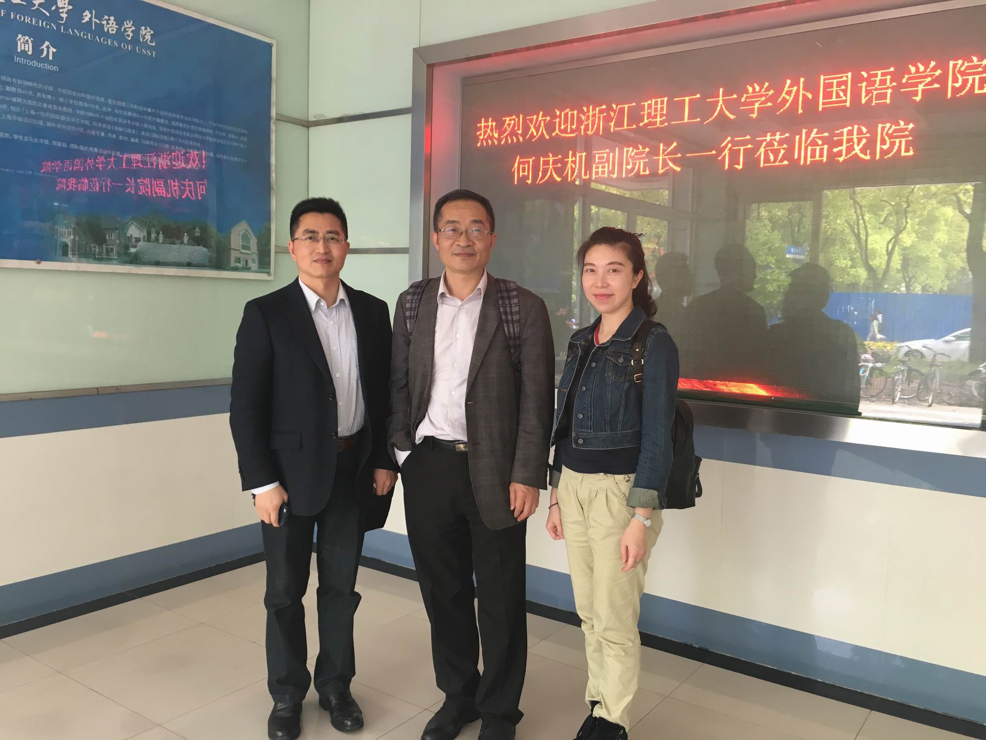 2016年4月21日,必赢76net线路副经理何庆机、大外一部主任李思龙、一部教师杨柳一行三人前往上海理工大学进行调研,学习交流翻译硕士(MTI)学位点建设经验。