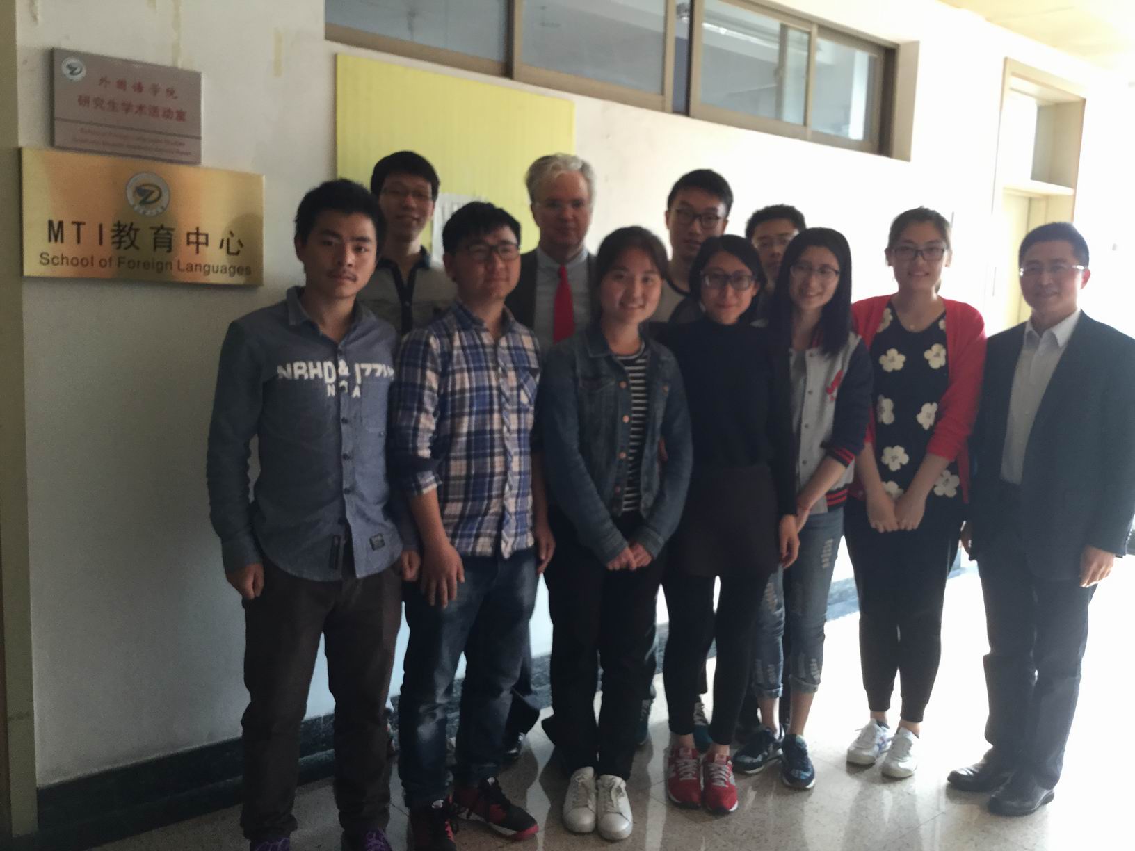 4月29日下午,上海外国语大学外籍教师文逍帆在7-327必赢76net线路MTI教育中心作了一场以“对外出版的理论与实践建议”为主题的学术报告。此次报告由大外一部主任硕士生导师李思龙老师主持,部分硕士生导师,2015级翻译硕士研究生以及来自其他学院的教师和员工一同出席了此次活动。