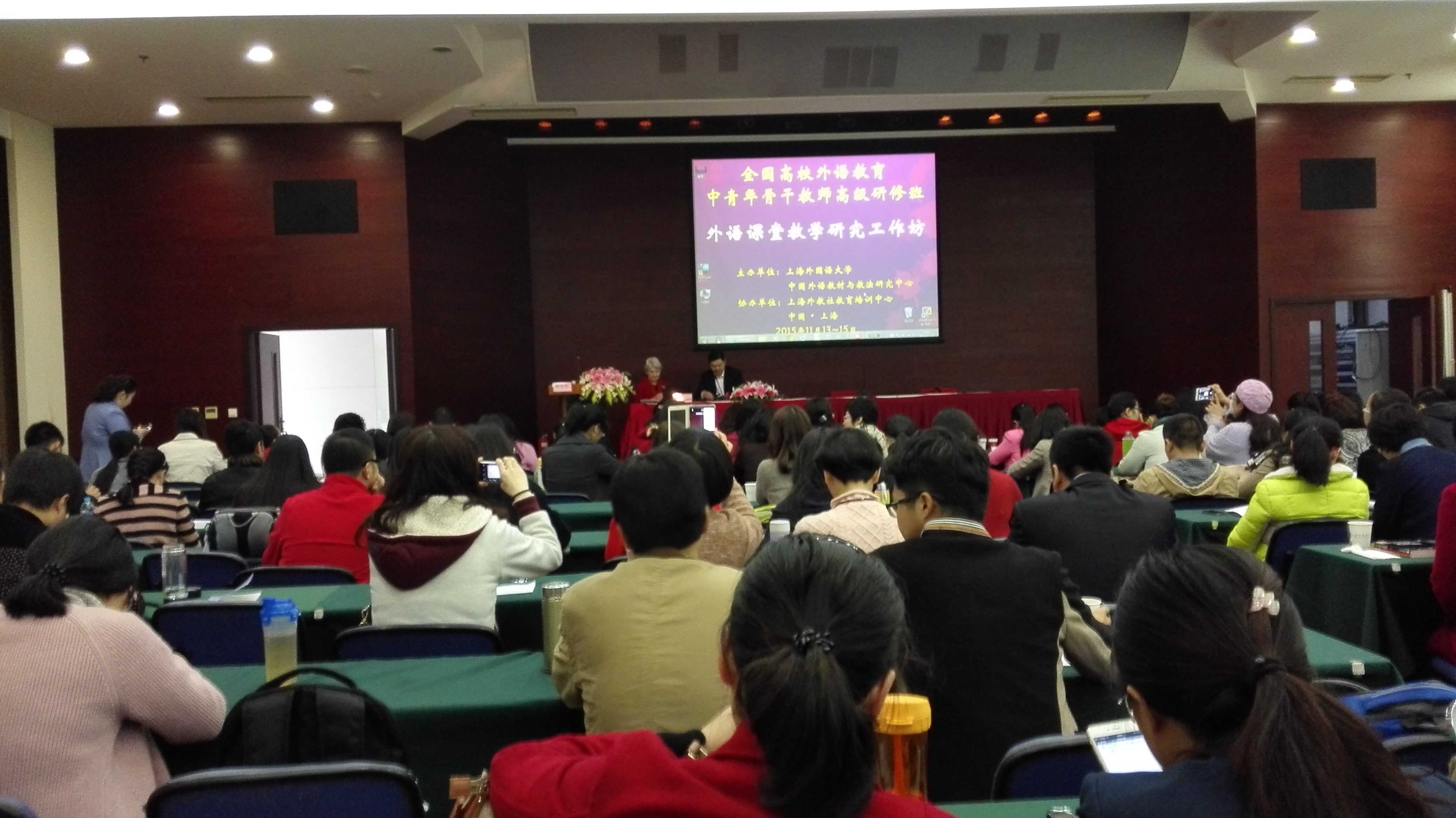 为全面贯彻教育部提高高等教育质量、加强团队队伍建设的精神,推动高校外语教学与科研发展,满足广大外语教师专业发展的需要,上海外国语大学中国外语教材与教法研究中心于2015年秋季(11-12月)举办“全国高等学校外语教育中青年骨干教师高级研修班”系列讲座。公司教师吕凤仪,翁峥彦报名参加了第一期(11月13-15日)题为“外语课堂教学研究工作坊”的研修课程。