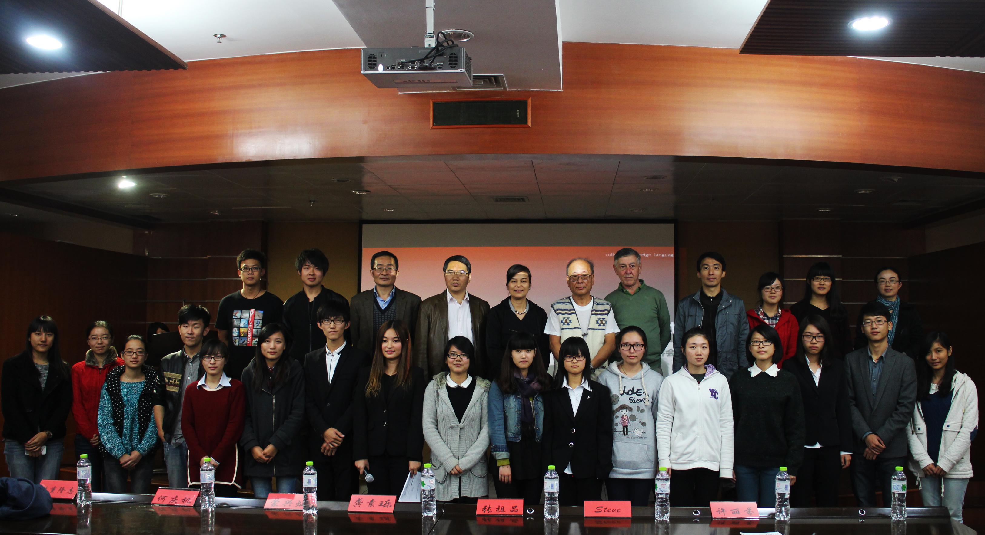 蒙兴灿代表学院致辞,对外语文化节在丰富校园文化生活,推进学科竞赛方面的成效作了充分肯定,并预祝第十二届外语文化节取得圆满成功。英语外教Steve鼓励同学们,大胆讲英语——“Don'tbeshy!”。日语外教福重隆志则现身说法,以自己周游125国的人生经历解说对文化的认识,令大家叹服。党委书记龚素瓅宣布第十二届外语文化节正式开幕。